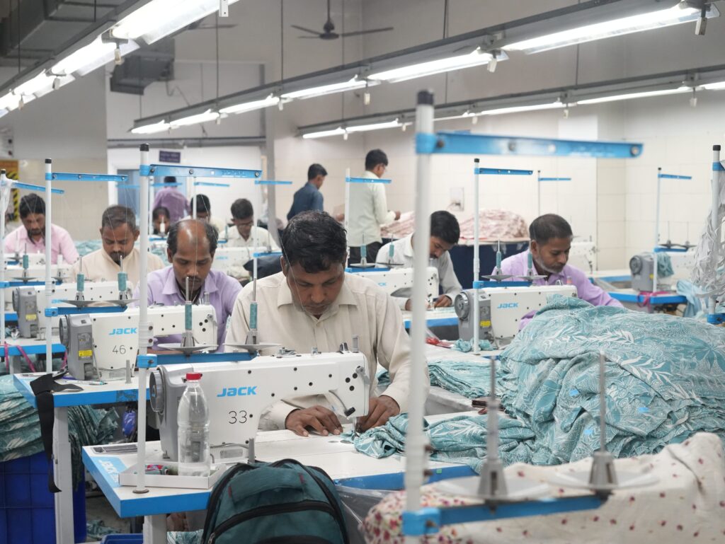 Skilled operators performing garment stitching on the production floor, ensuring consistency, efficiency, and adherence to quality standards.